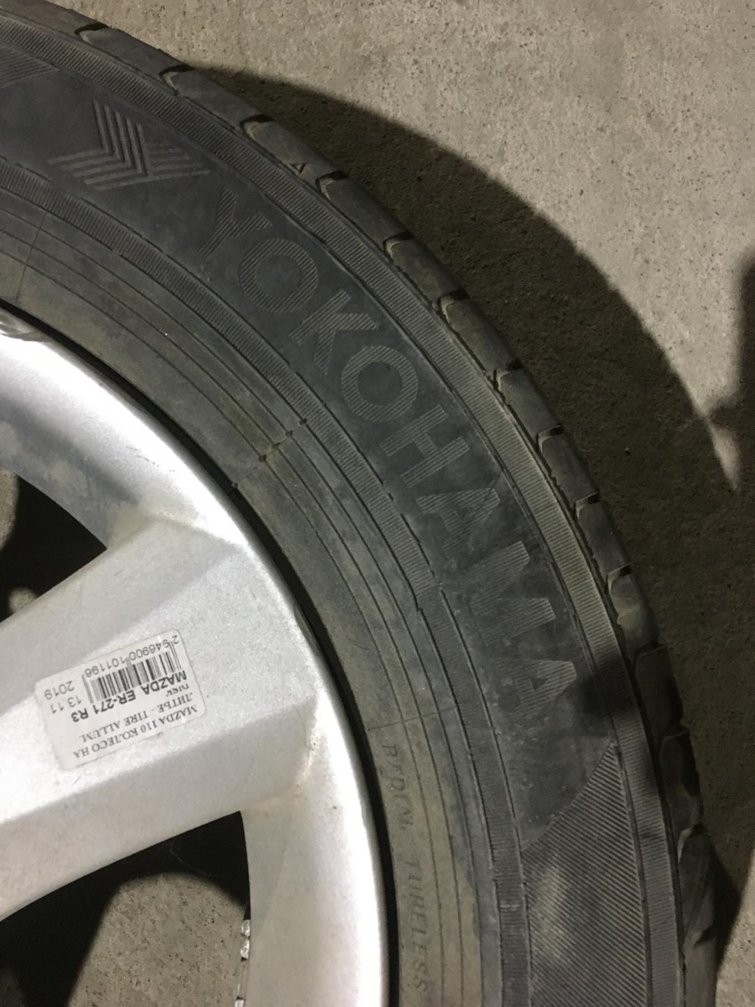 Колесо R15x6 5x114.3 (Yokohama Ecos es31 195/65) R15, ширина обода: 6, PCD 5x114.3 мм, ET 52.5 мм. Шины: легковые, летние, остаточная высота: 6.8мм. Mazda 3 2 2010 1.6 л., Z6, бензин, АКПП белый, хетчбэк 5 дв., правый руль