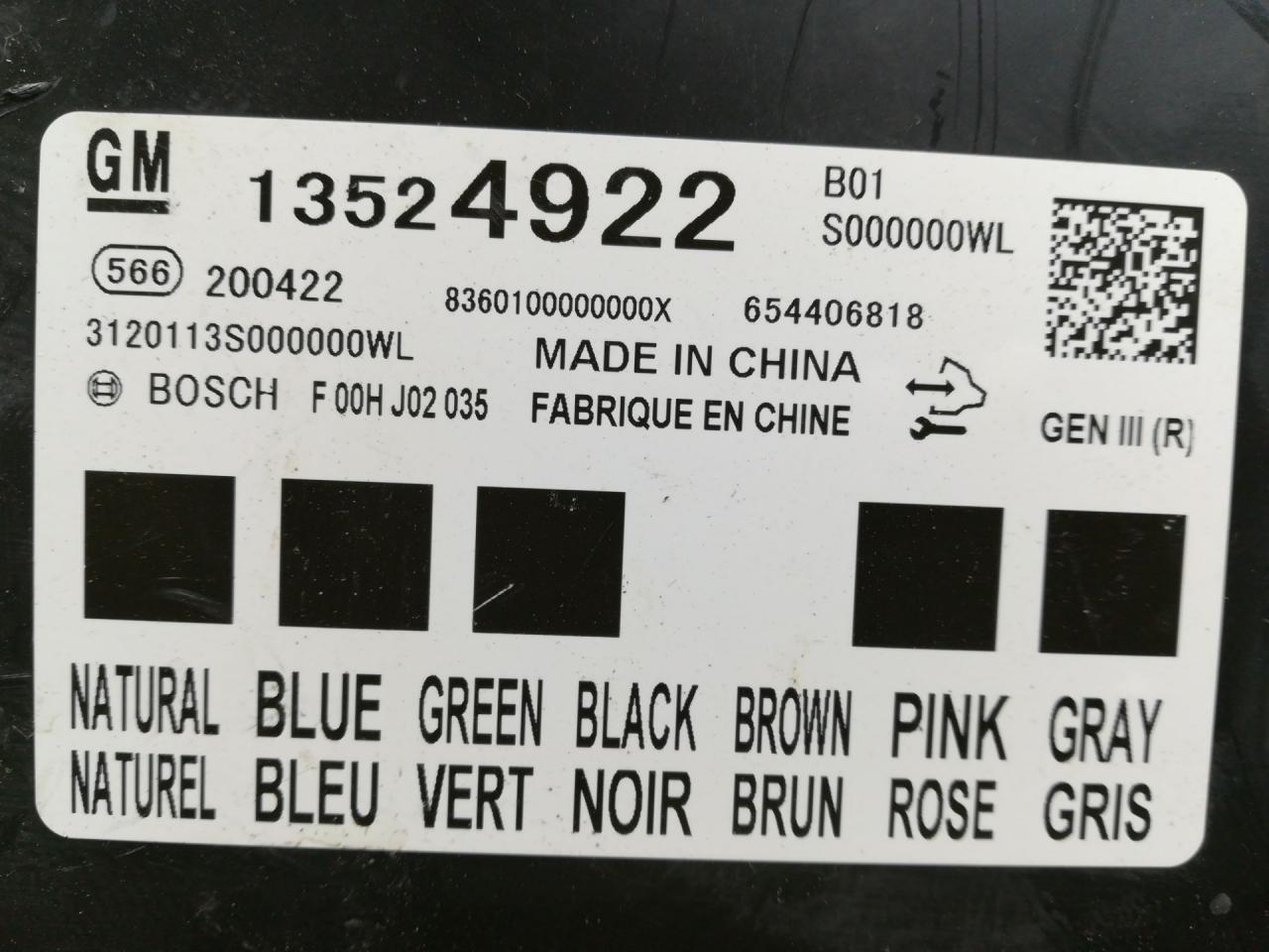 | Номер запчасти | 13524922 |