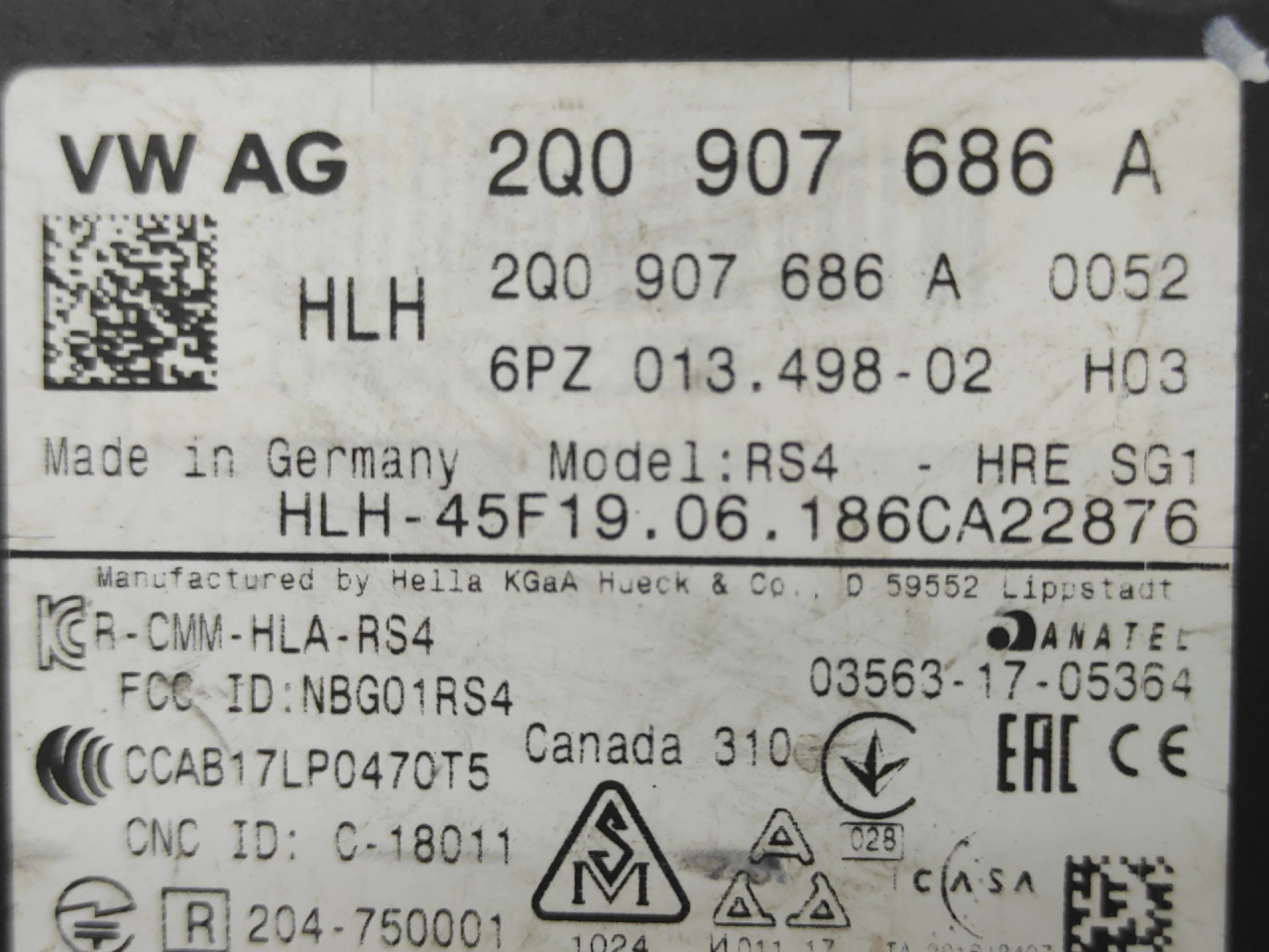 | Номер запчасти | 2Q0907686A |