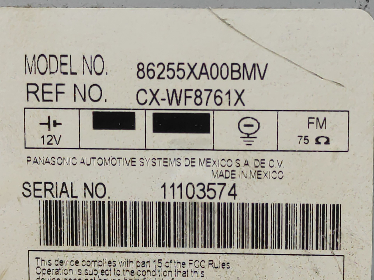 | Номер запчасти | 86255XA00BMV, CXWF8761X |