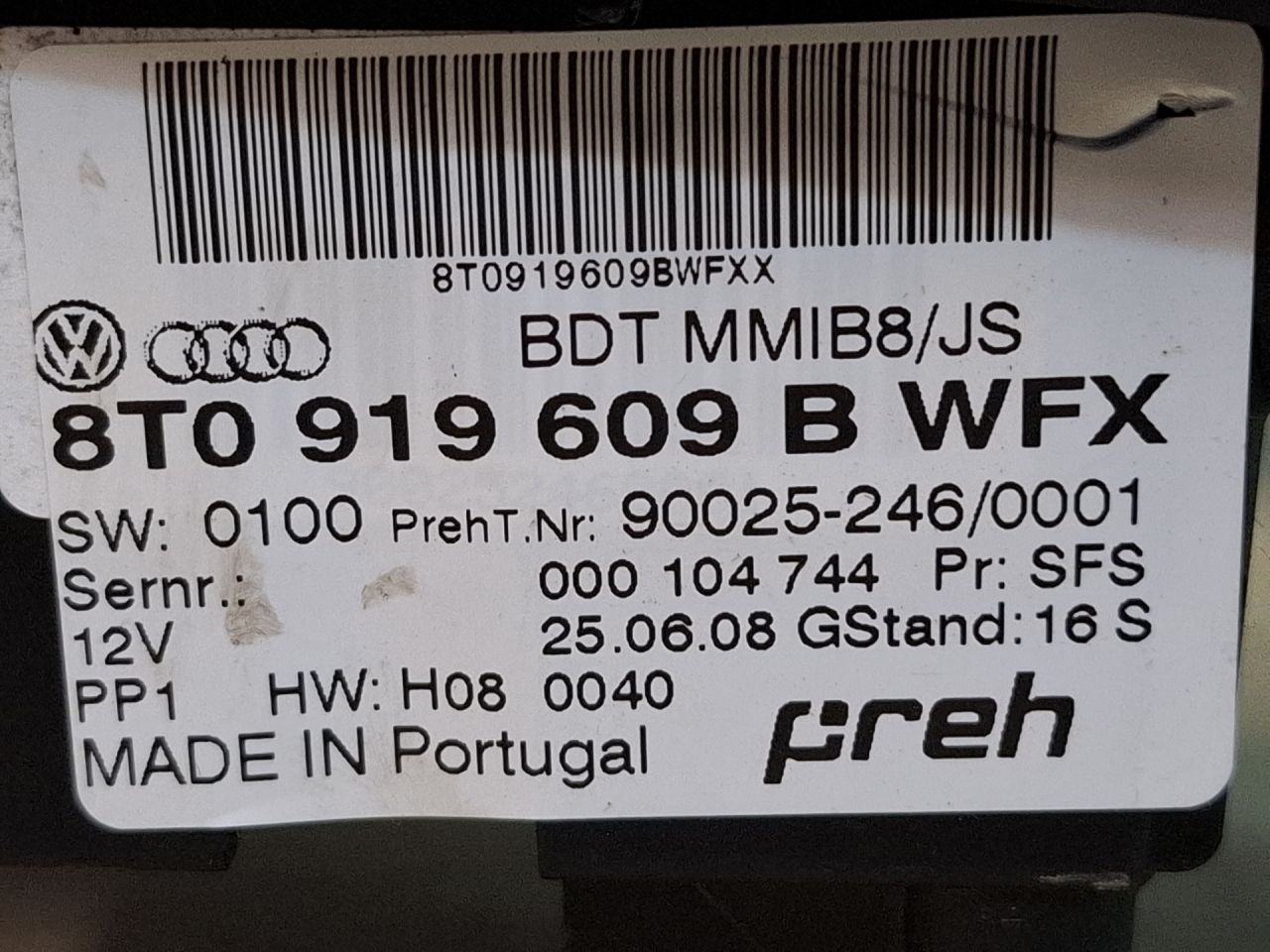 | Номер запчасти | 8T0919809BWFX |
