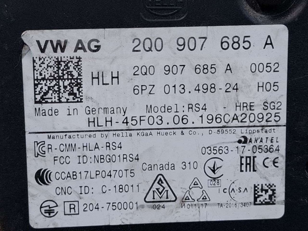 | Номер запчасти | 2Q0907685A |