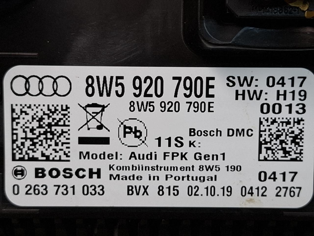 | Номер запчасти | 8W5920790E, 0263731033 |