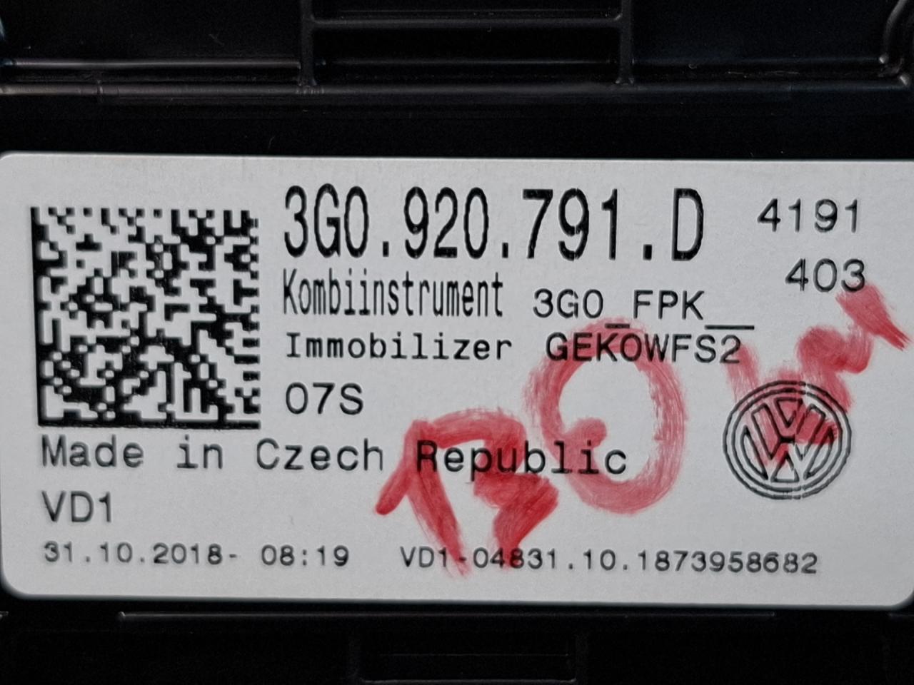 | Номер запчасти | 3G0920791D |